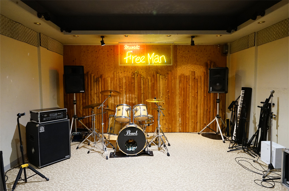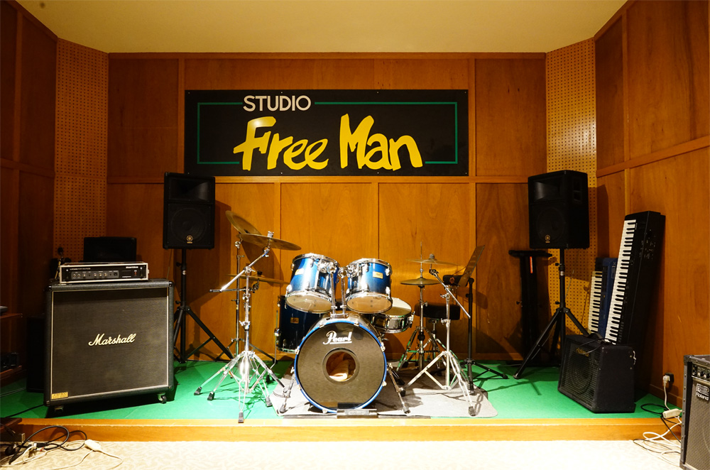FreeMan TOPへ 店内紹介 ギター教室 ドラム教室 ジャズ・ボーカル・スクール 練習スタジオ リペア料金表